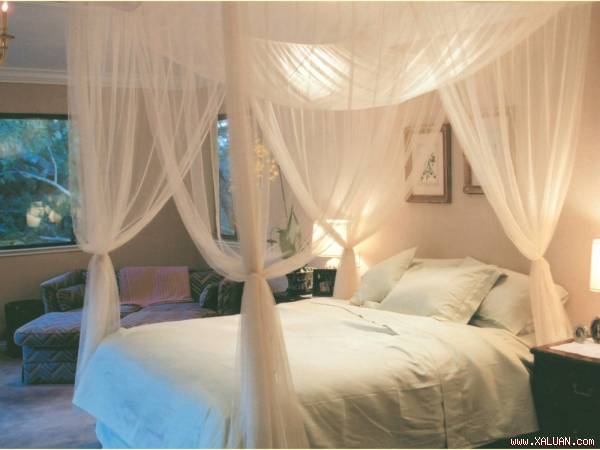 10. Thường đi cùng những kiểu giường khung gỗ cứng, những chiếc màn tạo ra sự cân đối, giúp làm mềm đi những đường nét của chiếc giường.